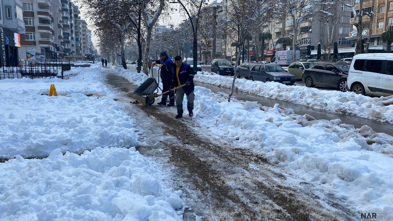 Kahramanmaraş Büyükşehir Belediyesi, şehirde etkisini sürdüren yoğun kış şartlarına karşı vatandaşların günlük yaşamlarının sekteye uğramaması ve ulaşımın güvenli şekilde devam etmesi için çalışmalarını hız kesmeden sürdürüyor. Sahada kesintisiz görev yapan ekipler hem araç trafiğinin hem de yayaların güvenliğini sağlamak amacıyla gece gündüz demeden mesai yapıyor. Ana arterler ve bağlantı yollarında kar küreme ve tuzlama çalışması yapan ekipler, yaya yollarında da çalışmalarını kesintisiz sürdürüyor. Çevre Koruma ve Sıfır Atık Dairesi Başkanlığı koordinesinde gerçekleştirilen çalışmalar kapsamında kaldırım, yaya yolları, üst geçitler, park alanları ve hastane önlerinde oluşan buzlanmaların giderilmesi amacıyla yayalar için risk oluşturan buz kütleleri temizleniyor. Buzlanmanın yeniden oluşmasını önlemek amacıyla tuzlama çalışmaları da yapılıyor.