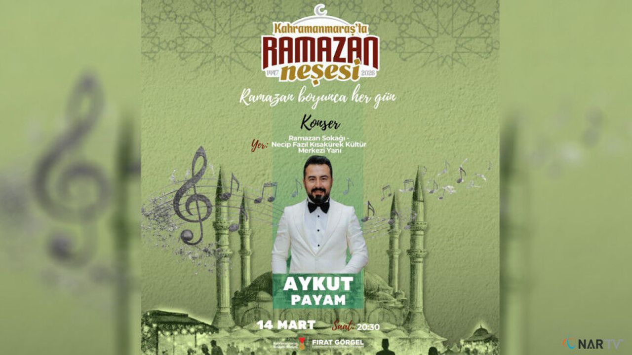 Kahramanmaraş Büyükşehir Belediyesi, Ramazan’ın manevi atmosferini şehrin dört bir yanında yaşatmak amacıyla düzenlediği etkinliklerini sürdürüyor. Bu kapsamda Ramazan Sokağı’nda gerçekleştirilecek programda, müzisyen Aykut Payam sahne alacak. Tasavvuf musikisinin sevilen eserlerini seslendirecek olan sanatçı, dinleyicilere manevi yönü güçlü bir müzik akşamı sunacak.