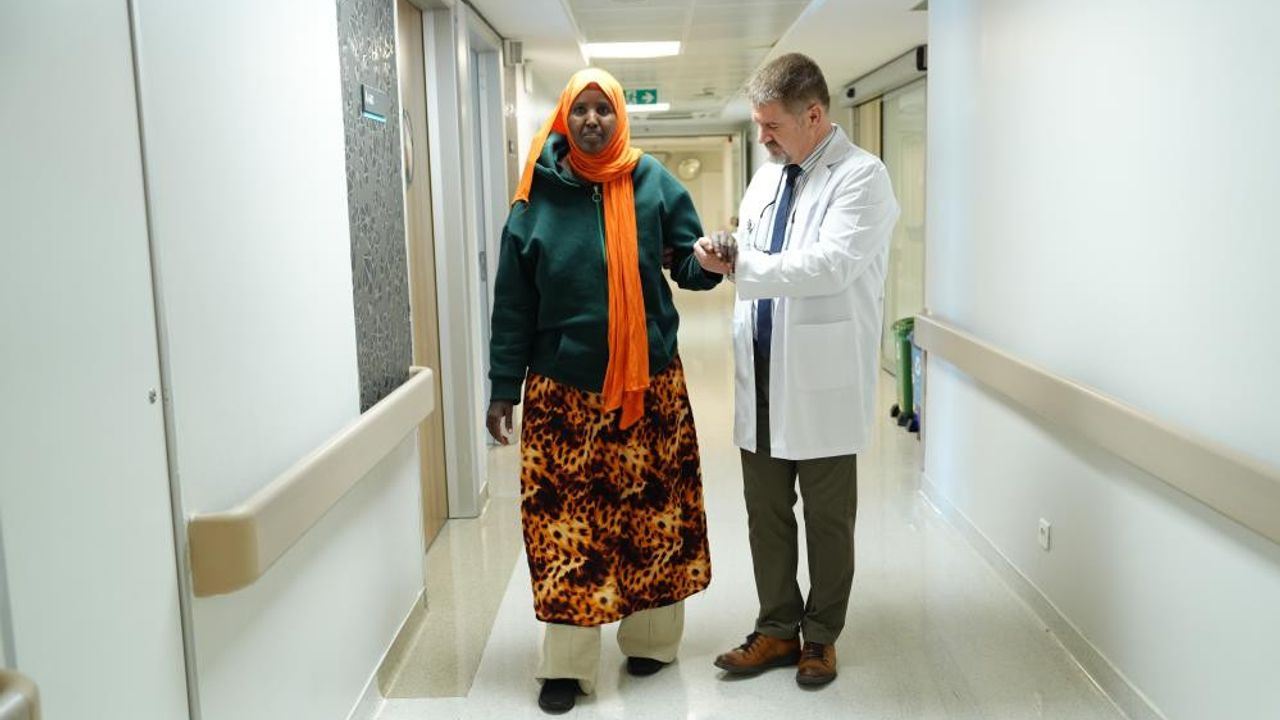 Ameliyat öncesinde ayağa kalkamayan hastamız yaklaşık 4 ay içinde yürüyebilir hale geldi. Bugün geldiğimiz noktada paraplejik olan hastamız ayakta yürüyebiliyor ve günlük ihtiyaçlarını kendi başına karşılayabiliyor" ifadelerini kullandı. Erken rehabilitasyon hayati rol oynadı Ameliyat sonrası sürecin en az cerrahi kadar önemli olduğuna dikkat çeken Prof. Ağırman, "Hastamız ağır bir nörolojik tabloyla rehabilitasyona alındı. Hastamızın sırt bölgesinde omurilikte ciddi bir lezyon vardı. Beyin ve Sinir Cerrahisi ekibimiz başarılı bir ameliyat gerçekleştirdi ancak ameliyat öncesinde var olan omurilik sinir hasarı nedeniyle bacaklarda ileri derecede güçsüzlük devam ediyordu. Hastayı ilk gördüğümüzde oturma dengesi yoktu ve ayakta duramıyordu" dedi. Robotik tedaviyle ayağa kalktı Hastayı erken dönemde kapsamlı bir rehabilitasyon programına aldıklarını vurgulayan Prof. Dr. Ağırman, "Erken dönemde robotik rehabilitasyon uygulamalarından yoğun şekilde faydalandık. Robotik yatakla hastayı dik pozisyona getirerek ayak hareketlerini başlattık, kol robotlarıyla üst ekstremite fonksiyonlarını artırdık. Zamanla kaslar güçlendi, sinir uyarımları arttı ve iyileşme hızlandı. Bugün hastamız yürüteçle bağımsız şekilde yürüyebiliyor, günlük ihtiyaçlarını kendi başına karşılayabiliyor" şeklinde konuştu. "Mutluluğum tarif edilemez" Aylar sonra ayağa kalkan Fatouma Adoch Hoche ise duygularını şu sözlerle ifade etti: "Hastaneye geldiğimde yatalaktım, Tüberküloz hastalığım vardı ve belim kırılmıştı. Kızımın tedavisi için geldiğim İstanbul'da ben de şifa buldum. Bugün sağlık durumum çok iyi, kendim yürüyebiliyorum ve mutluluğum tarif edilemez. Şifa Allah’tan ama buradakihocalarımız bana karşı çok ilgili ve profesyonellerdi."