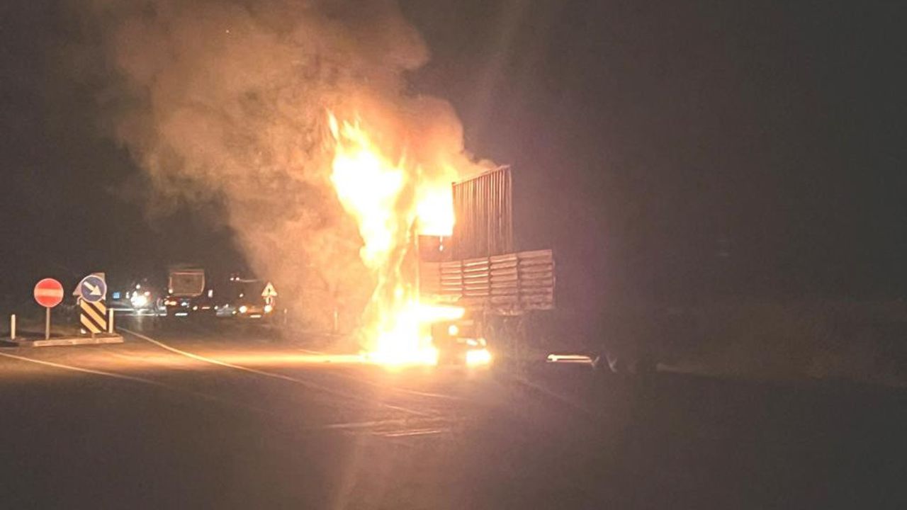 Kütahya'da kara yolunda seyir halindeki tırın motor kısmında çıkan yangın itfaiye ekiplerince söndürüldü. Yangın sonucu tır kullanılmaz hale geldi. Edinilen bilgiye göre, dün gece F.K. idaresinde 43 ADC 522 plakalı tır, Emet’ten Tavşanlı istikametine seyir halinde iken Köprücek Köyü yakınlarında motor kısmından dumanlar yükselmeye başladı. Kısa sürede büyüyen yangın, tırın tamamını sardı. İhbar üzerine olay yerine itfaiye ve jandarma ekipleri sevk edildi. Emet Belediyesi itfaiye ekiplerinin müdahalesiyle yangın kontrol altına alınarak söndürüldü. Yangın sonucu tır kullanılamaz hale geldi. Yangınla ilgili soruşturma sürüyor.