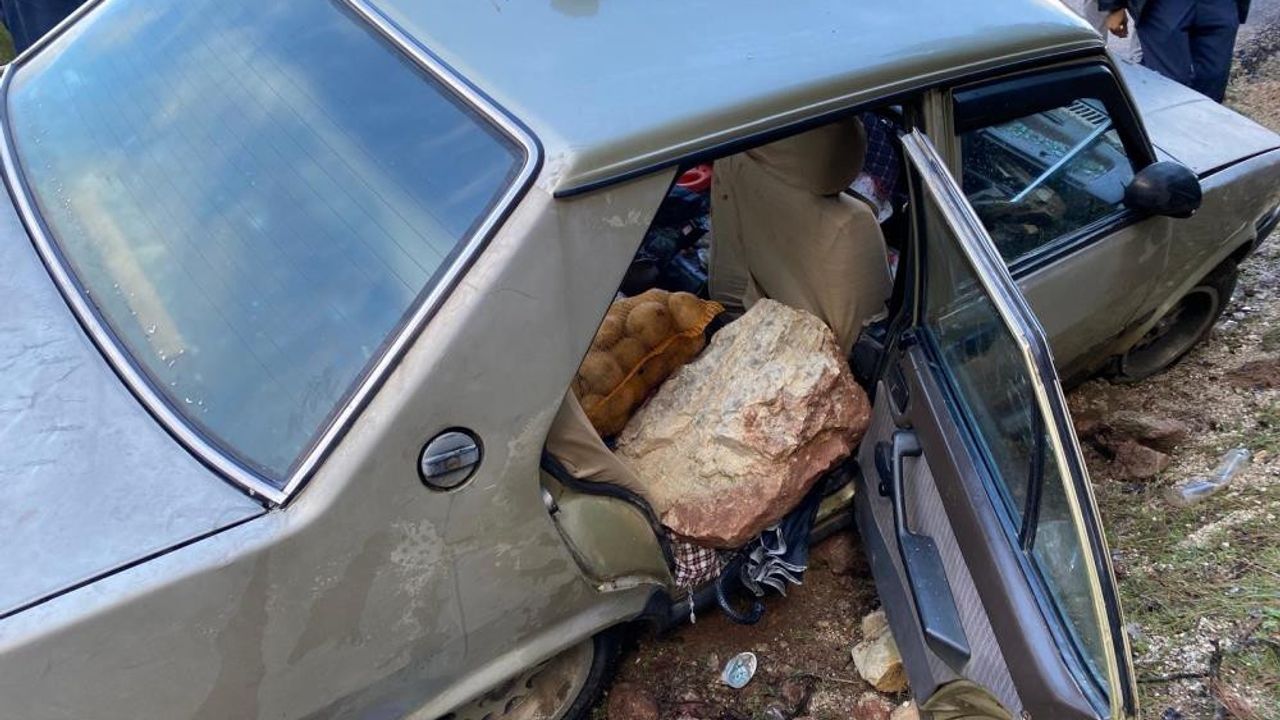 Kaya parçası, seyir halindeki aracın ön camını kırarak içeri girdi. Kazada sürücü Muhammed E., araçta bulunan komşusu İsmail D. ve 2 kardeş yaralandı. İhbar üzerine olay yerine sevk edilen sağlık ekipleri ilk müdahaleyi yaptıktan sonra yaralıları ambulanslarla hastaneye kaldırdı. Sürücü Muhammed E. ve İsmail D.'nin durumunun ağır olduğu, 2 kardeşinin ise hafif yaralandığı öğrenildi. Kazayla ilgili inceleme başlatılırken, aile üyeleri bölgede daha sıkı güvenlik önlemleri alınmasını talep etti.