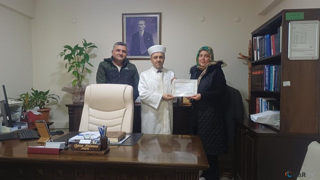 Moldova uyruklu Kader Çetin için gerçekleştirilen ihtida merasimi Kur'ân-ı Kerîm tilavetiyle başladı. Bartın Müftü Yardımcısı Oğuz Yılmaz, Kader Çetin'e İslam'ın temel esaslarına dair bilgilendirmede bulundu.