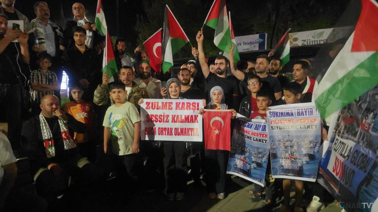 Gaziantep’in İslahiye ilçesinde bir araya gelen yüzlerce kişi, İsrail’in Sumud Filosu’na yönelik saldırılarına tepki gösterdi. Gaziantep’in İslahiye ilçesinde bir araya gelen yüzlerce kişi, İsrail’in Gazzelilere ve Sumud Filosu’na yönelik saldırılarına tepki gösterdi. İşgalci rejimin, Gazze’ye destek için 30 Ağustos'ta Conova'dan yola çıkan Sumud Filosu'na saldırı başlatması üzerine konvoy oluşturan İslahiye halkı, daha sonrasında Demokrasi meydanında toplanarak basın açıklaması yaptı. Yapılan açıklamada işgalci İsrail’e lanet okurken Filistin ve Gazze halkına destek sloganları atıldı. Yapılan basın açıklamasının ardından vatandaşlar dağıldı.