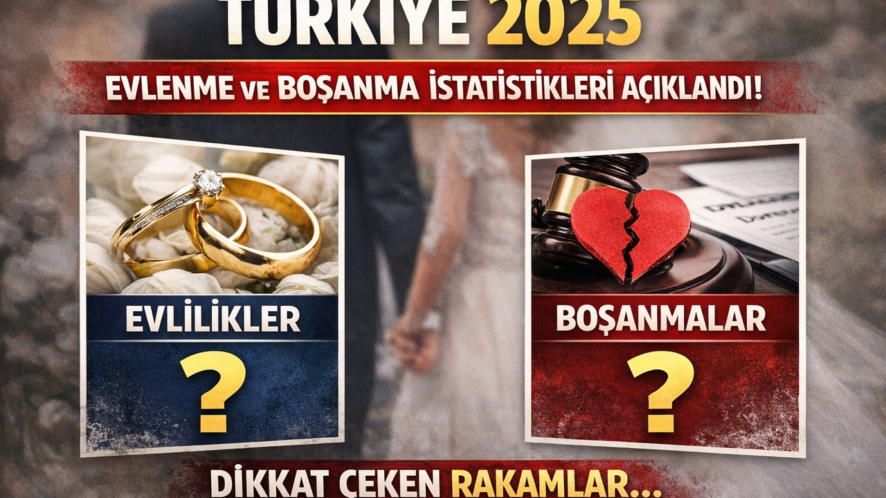 2025 yılı Evlenme ve Boşanma İstatistikleri’ni açıkladı. Buna göre, evlenen çiftlerin sayısı 2024 yılında 569 bin 983 iken 2025 yılında 552 bin 237 oldu. Bin nüfus başına düşen evlenme sayısını ifade eden kaba evlenme hızı 2025 yılında binde 6,43 olarak gerçekleşti. Boşanan çiftlerin sayısı 2025 yılında 193 bin 793 oldu